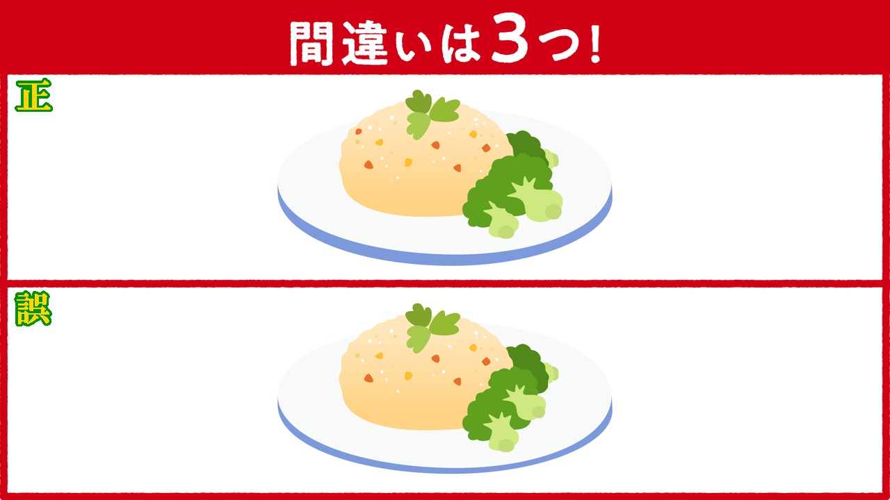 私からは、【イラストクイズ(チャーハンの間違い探し)】と、【漢字クズ】です。