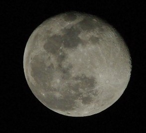 東の空 お月さまの下方で明るく光っている星は木星です。