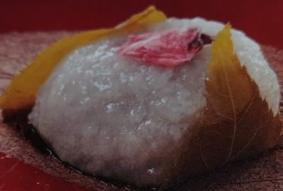 道明寺の桜餅、桜の葉っぱごと食べるのが好きです。