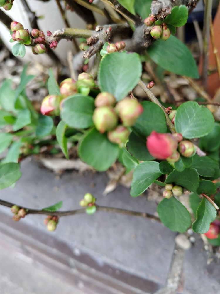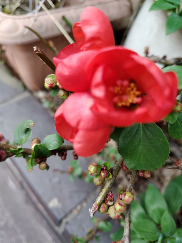 散歩の途中、ボケが咲いているのを見つけて、嬉しくなりました。