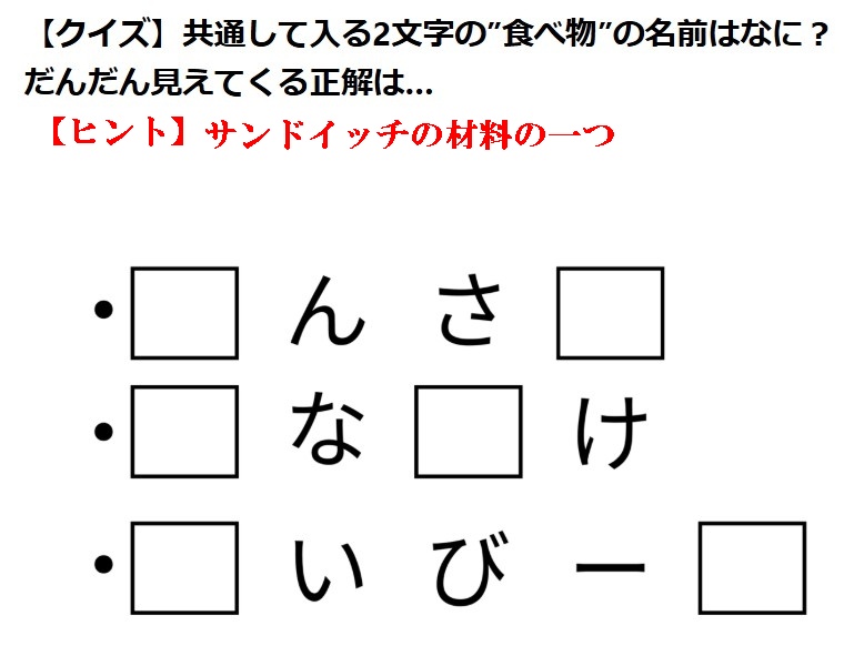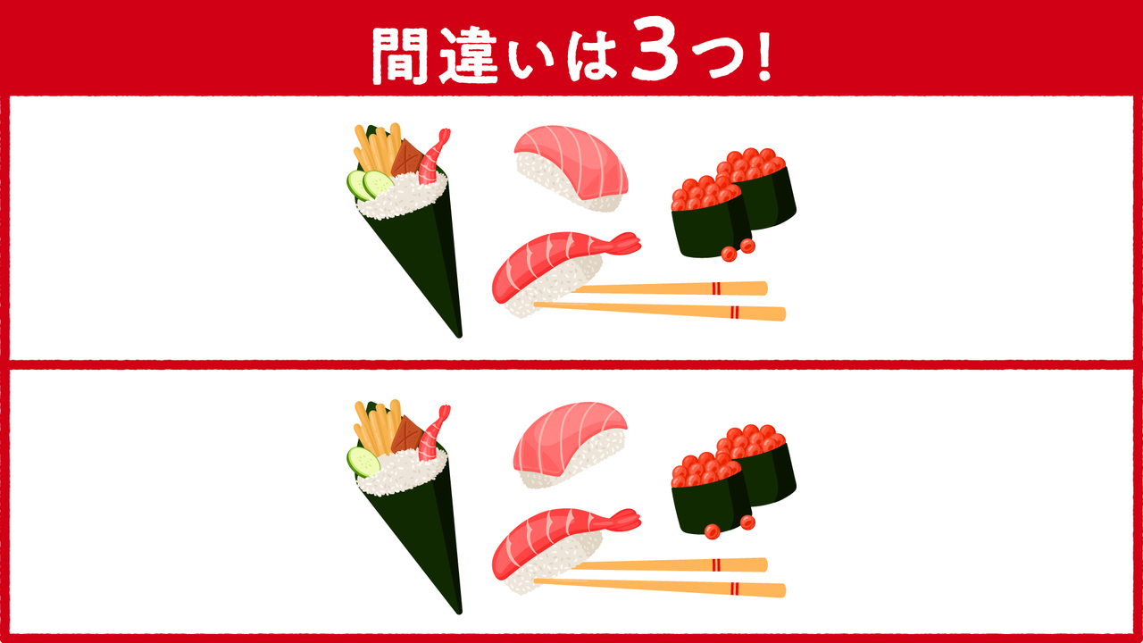 私からは、【イラストクイズ(握り寿司の間違い探し)】と、【漢字クイズ】です。