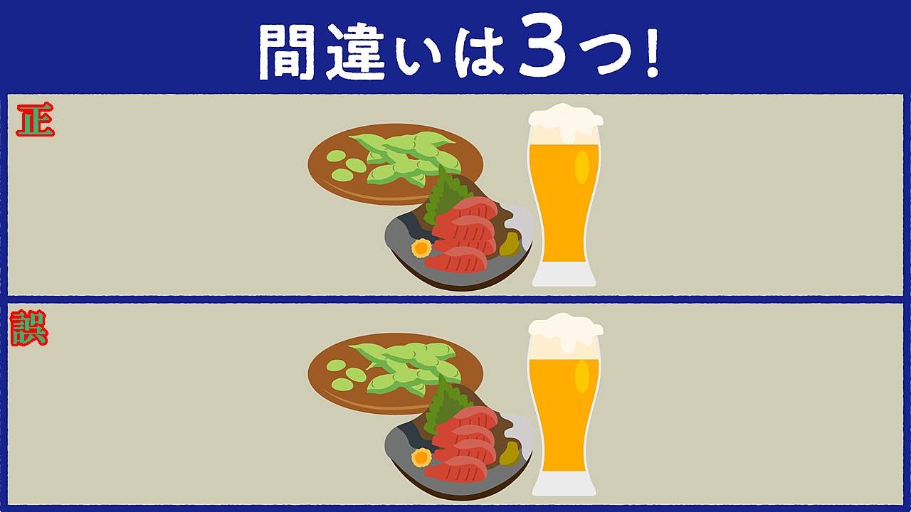 私からは、【イラストクイズ(晩酌の間違い探し)】と、【漢字クイズ】です。