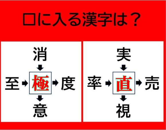 左側は、【極】で、天辺から時計回りに【消極】・【極度】【極意】・【至極】となります。