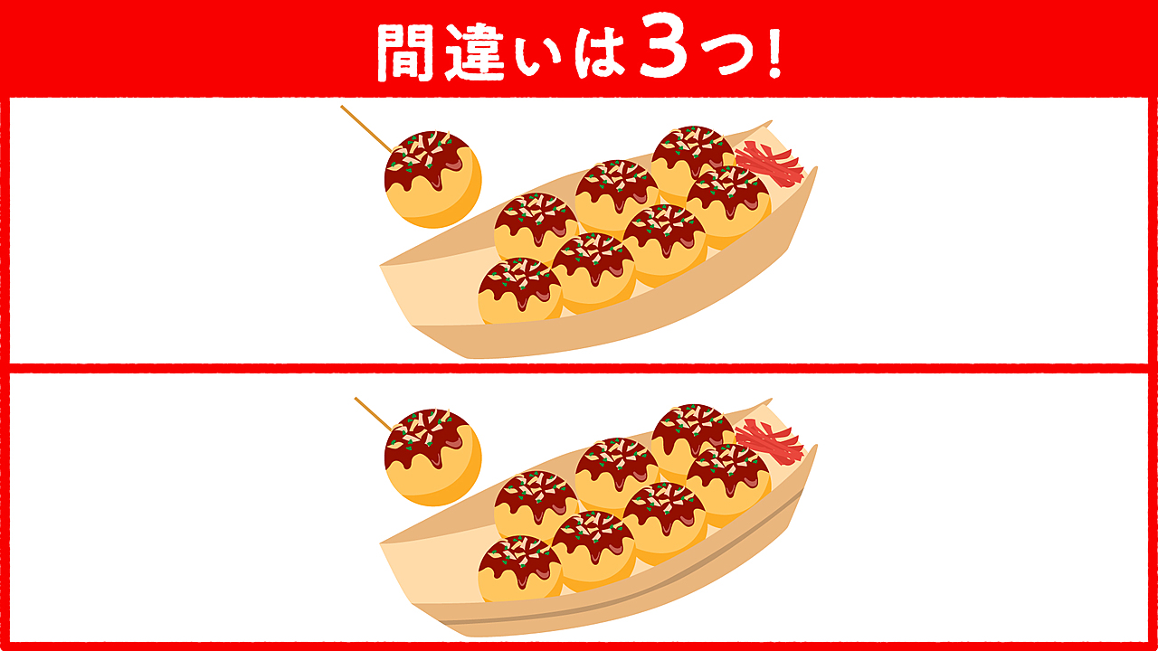 今日の【イラストクイズ】も、【たこ焼き の間違い探し】です。