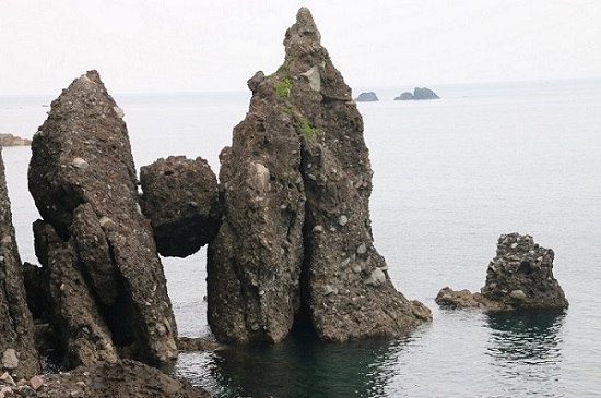 画像は兵庫県豊岡市竹野海岸の「はさかり岩」です。