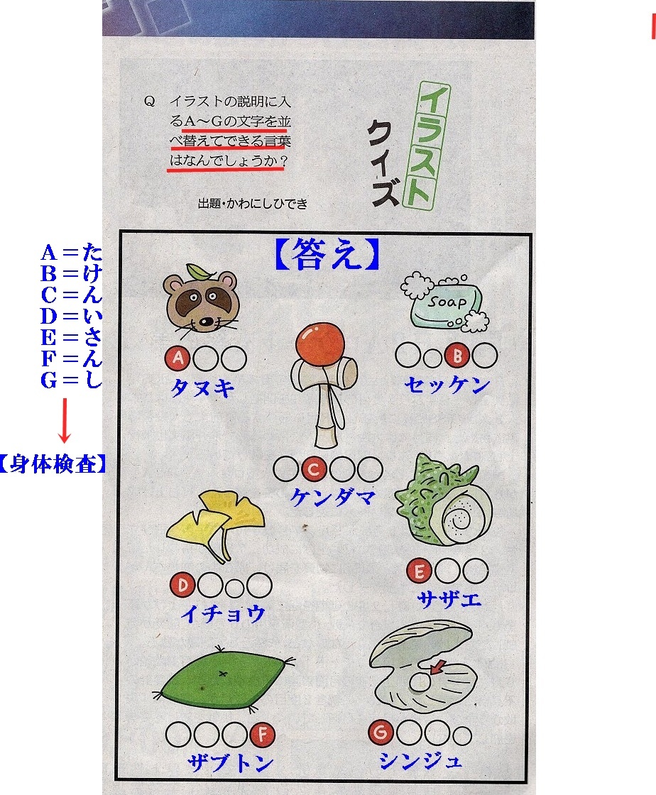 【イラストクイズ】、(身体検査)も、(和菓子)もお見事両方正解でした🎵