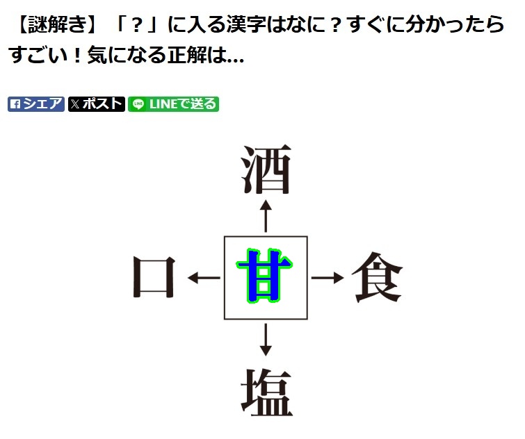 【漢字クイズ】の上段は、【手】ではなく、【甘】でした。士かに、【手】もほぼほぼ正解のようなものだと思いますが、残念でした。