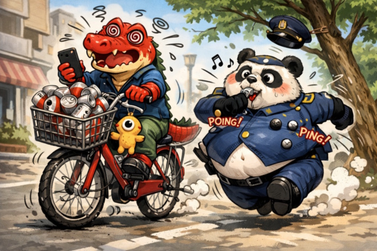 あららら・・・なぜか赤い顔したワニさん、片手に携帯そして