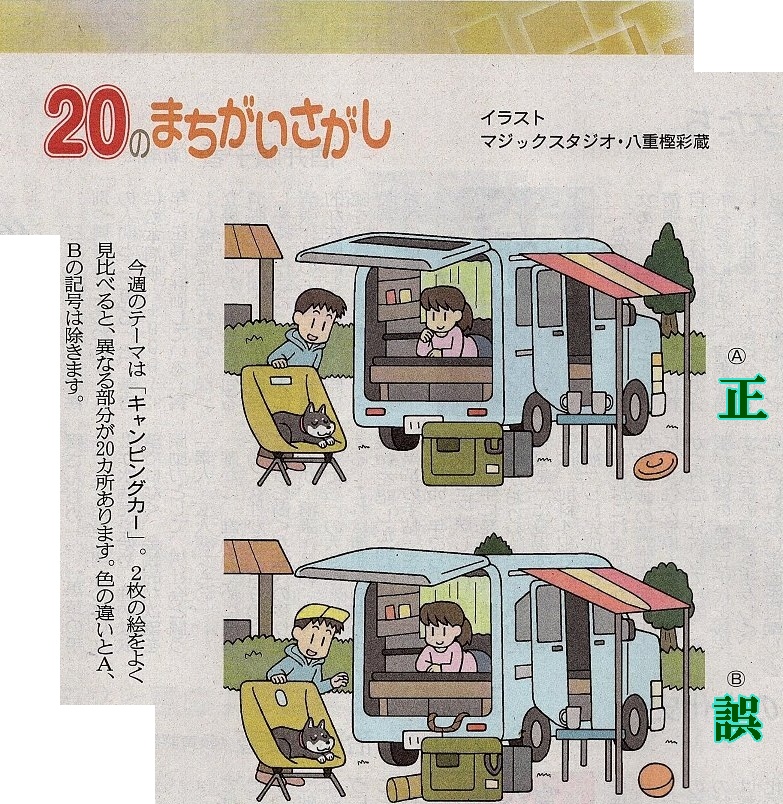 土曜日は、【20の間違い探し】(キャンピングカー)です。