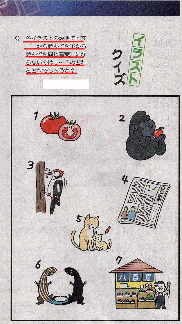 今日は、【イラストクイズ(絵解き)】と、【漢字クイズ】です。