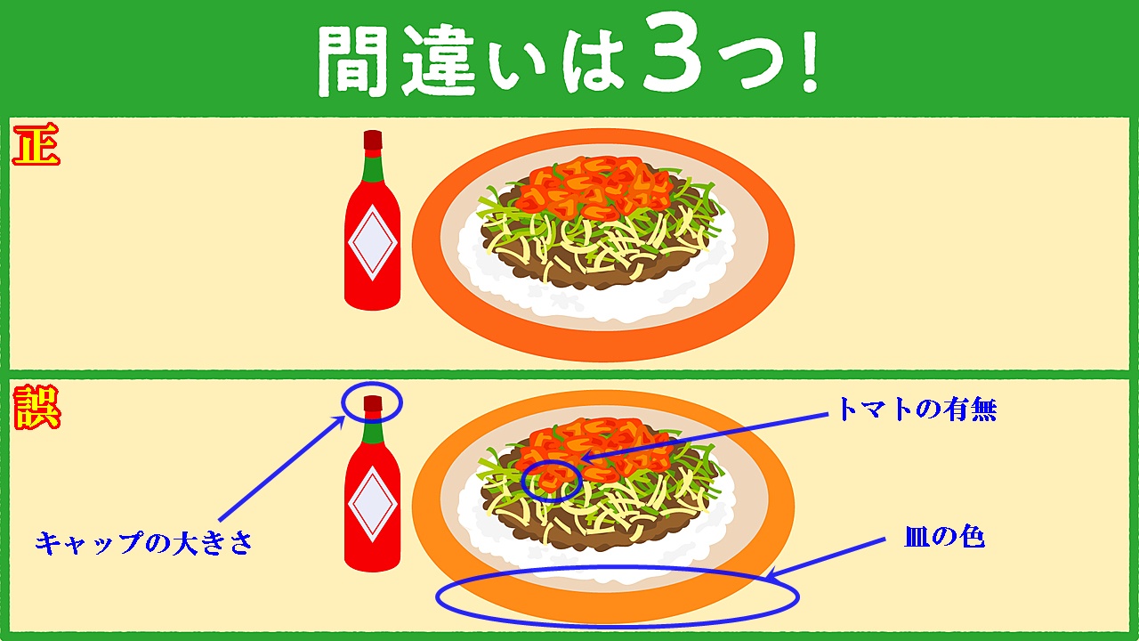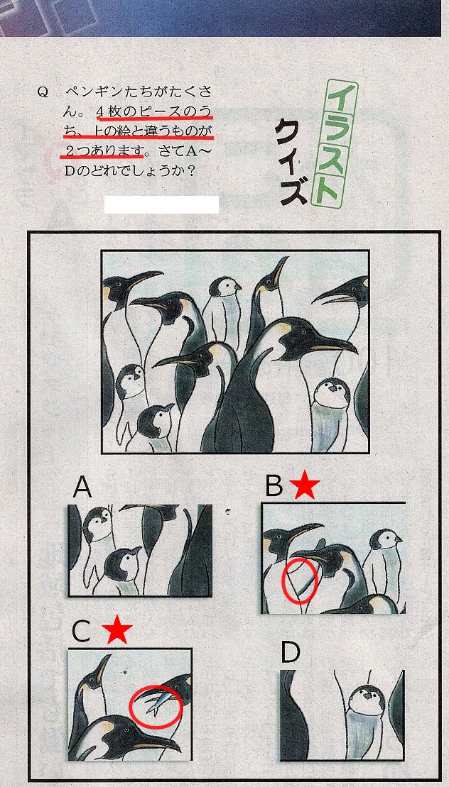 【イラストクイズ】、(ペンギンの間違い探し)も、(20の間違い探し)も、(タコライスの間違い探し)も全問正解でーす。お見事〜、お見事〜♪