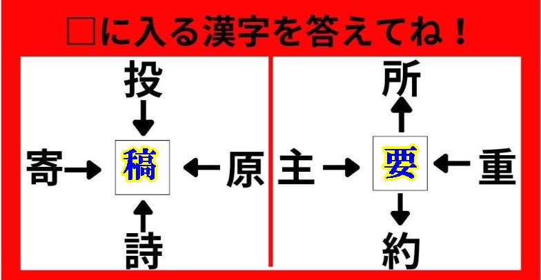【漢字クイズ】の【稿・要】も、【交・市】も二問共お見事正解でした。