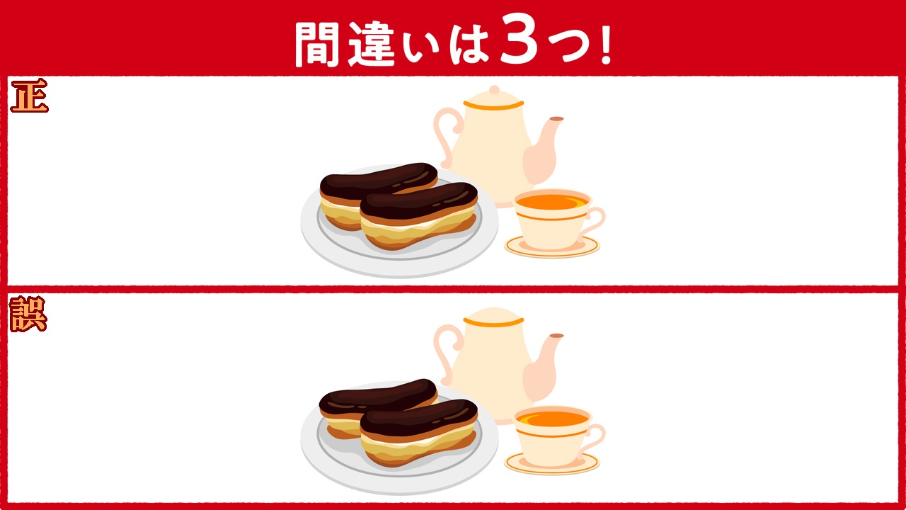 今日の【イラストクイズ】は、(チョコレートの間違い探し)と、【漢字クイズ】です。