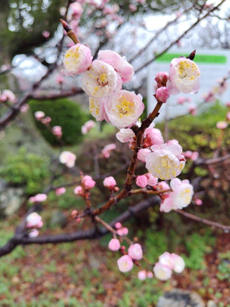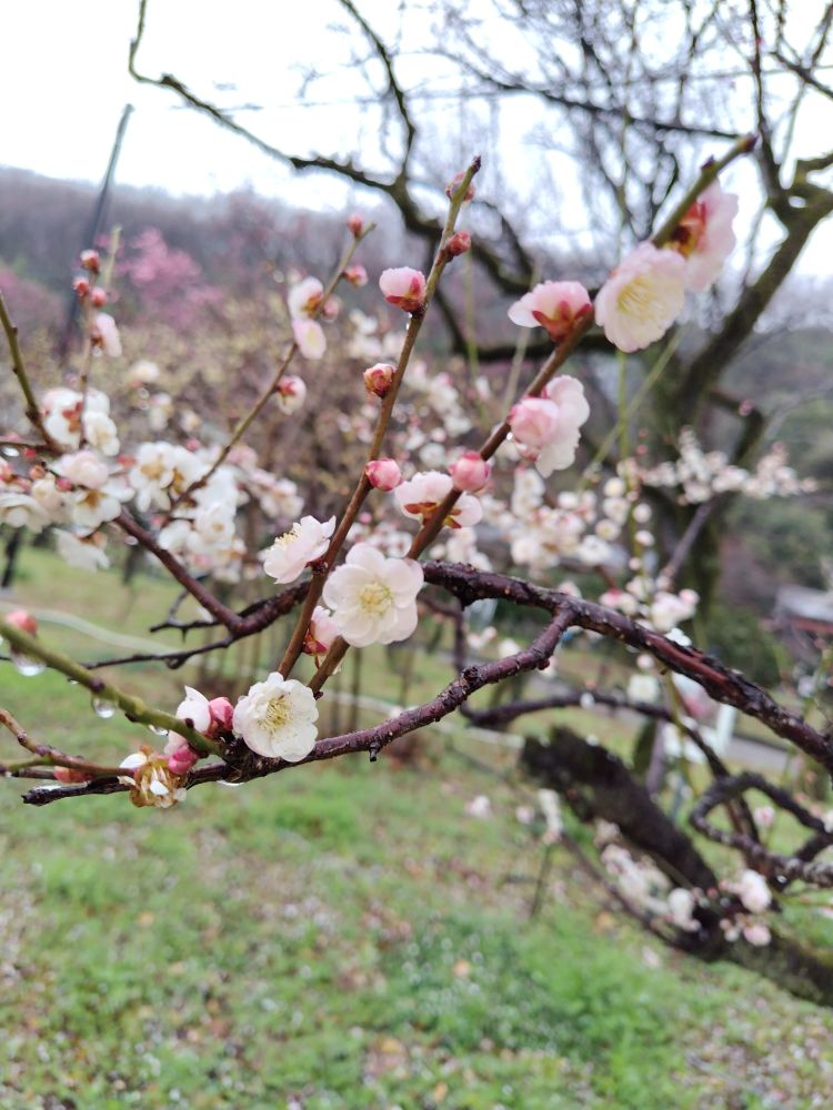 小雨の中、梅林公園へ梅見に行ってきました。
