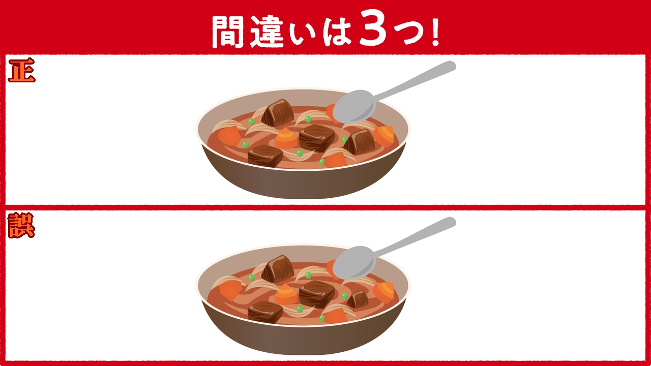 私からは、【イラストクイズ(ビーフシチューの間違い探し)】と、【漢字クイズ】です。