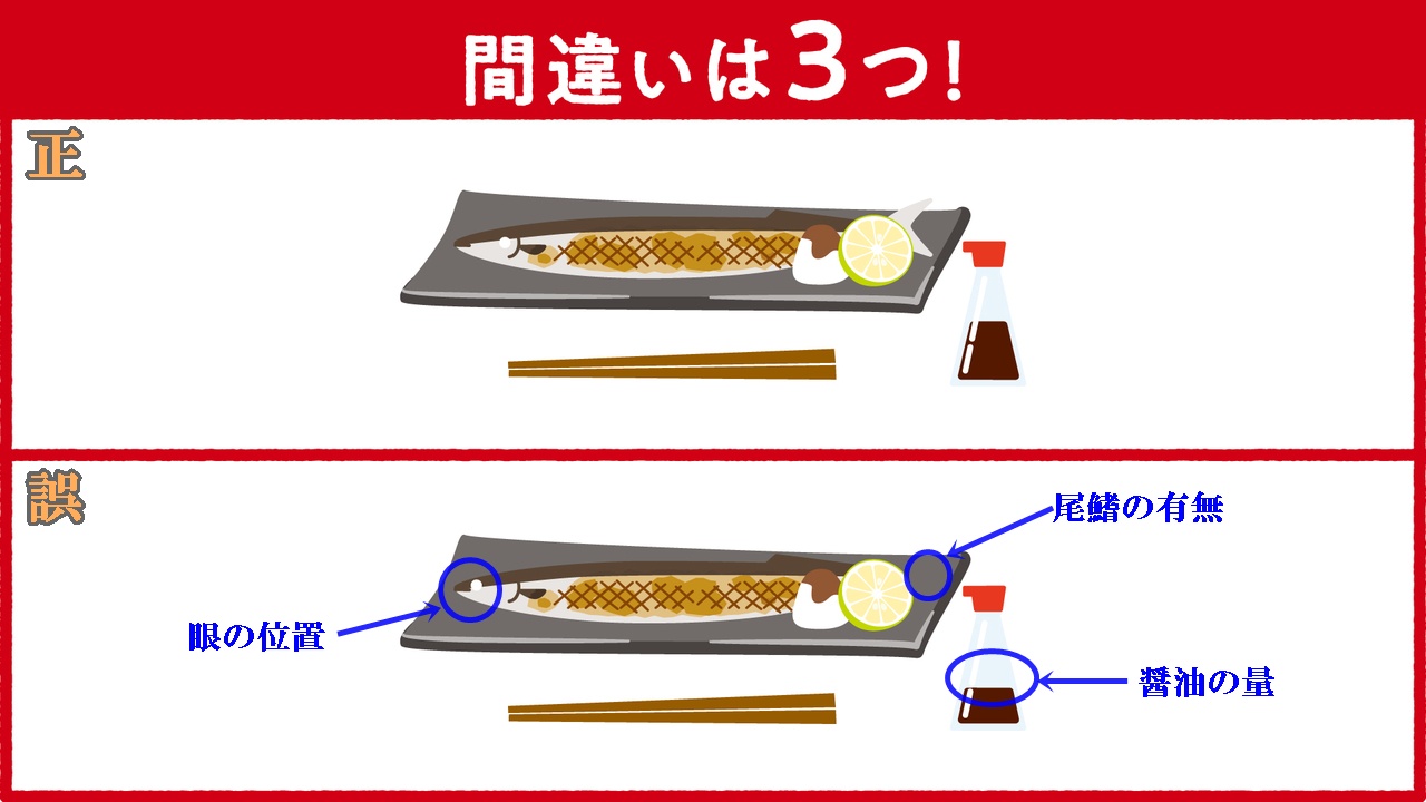 >【イラストクイズ(焼き魚の間違い探し)】も、【漢字クイズ】もお見事正解でーす🎵