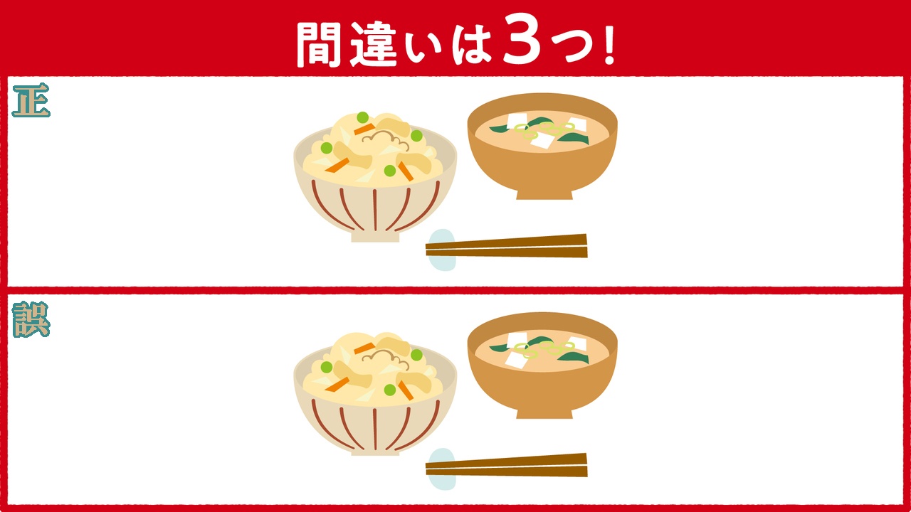私からは、【イラストクイズ(炊き込みご飯の間違い探し)】と、【漢字クイズ】です。